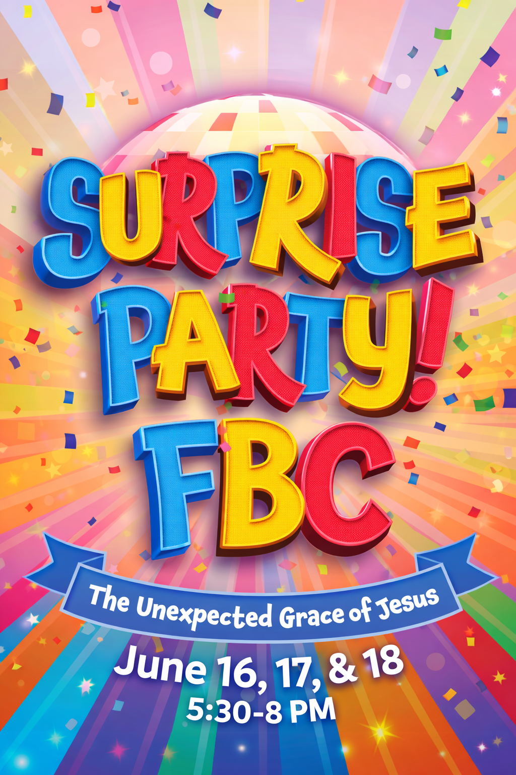 This FBC is about how surprising Jesus’ grace really is! But the surprises don’t stop there. Meals, games, crafts, skits, and activities are loaded with surprises throughout the event.